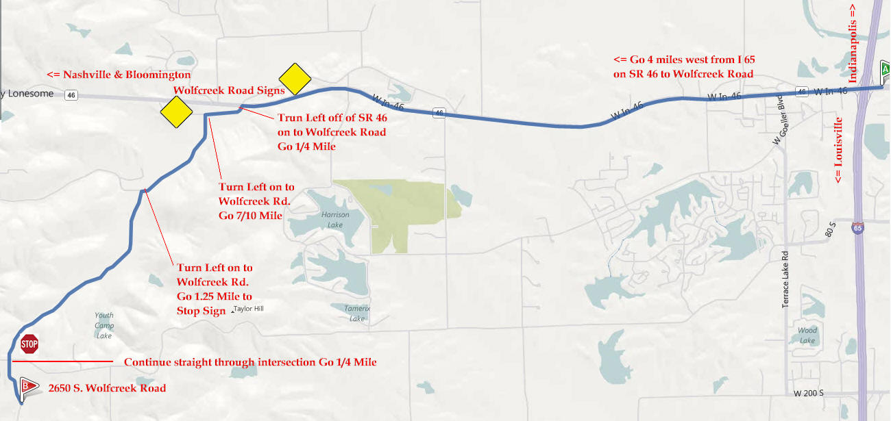 State Road 46 at the end of South Wolfcreek Road on the edge of Brown